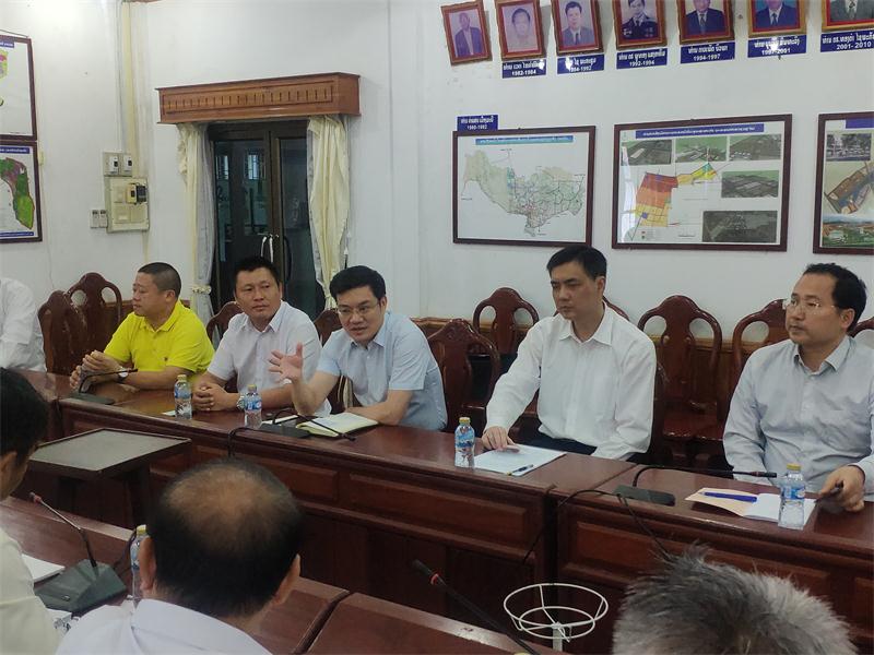 楊宏偉與中國(guó)駐老撾大使館經(jīng)濟(jì)商務(wù)參贊王其輝(右二)交流