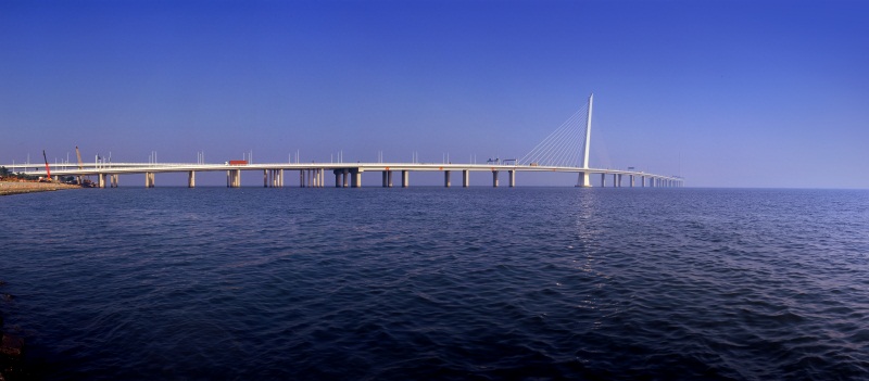 安慶長(zhǎng)江公路大橋 廣東深圳灣大橋,斜拉橋,2007年7月竣工通車(chē),是我國(guó)第一條跨海連接內(nèi)地與香港的陸路通道,是當(dāng)時(shí)世界上最寬的單索面斜拉橋,是國(guó)內(nèi)最寬、設(shè)計(jì)壽命最長(zhǎng)、建造標(biāo)準(zhǔn)最高的公路大橋,被譽(yù)為“海上彩虹”。