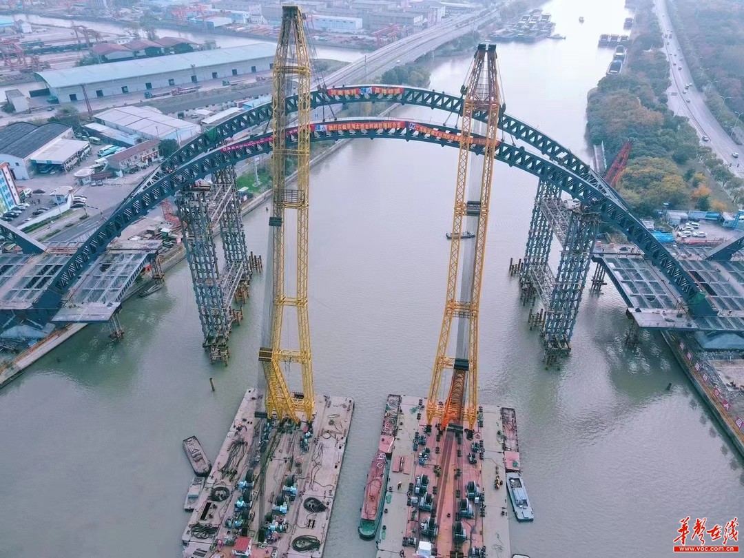 湖南日報(bào)·華聲在線11月25日訊(通訊員 楊新湘 趙宇清)今天,由湖南建投集團(tuán)旗下湖南路橋承建的無錫菱湖大橋拱肋順利合龍。大橋主跨183米,是京杭大運(yùn)河無錫段跨度最大的橋梁,合龍拱長101.3米,最大重量530噸,是京杭運(yùn)河上單次吊裝長度最長、重量最大的鋼桁架合龍拱節(jié)段。