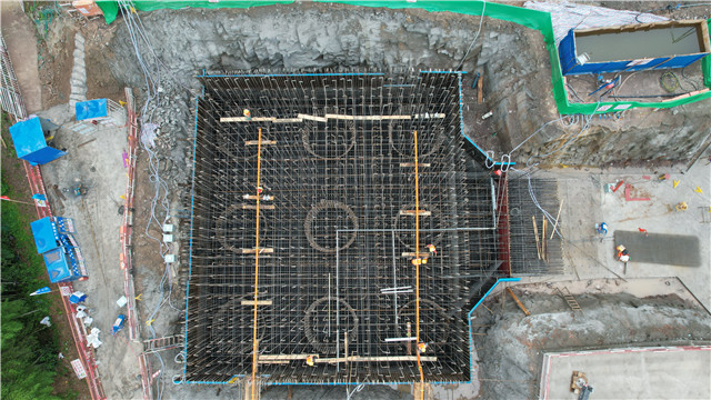 6月17日,官莊岸索塔左幅承臺首層混凝土澆筑